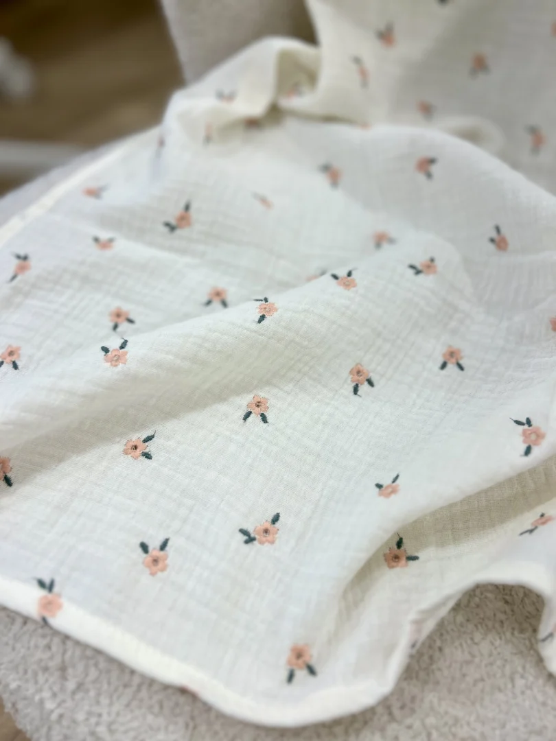 Copertina mussola fiori ricamati
