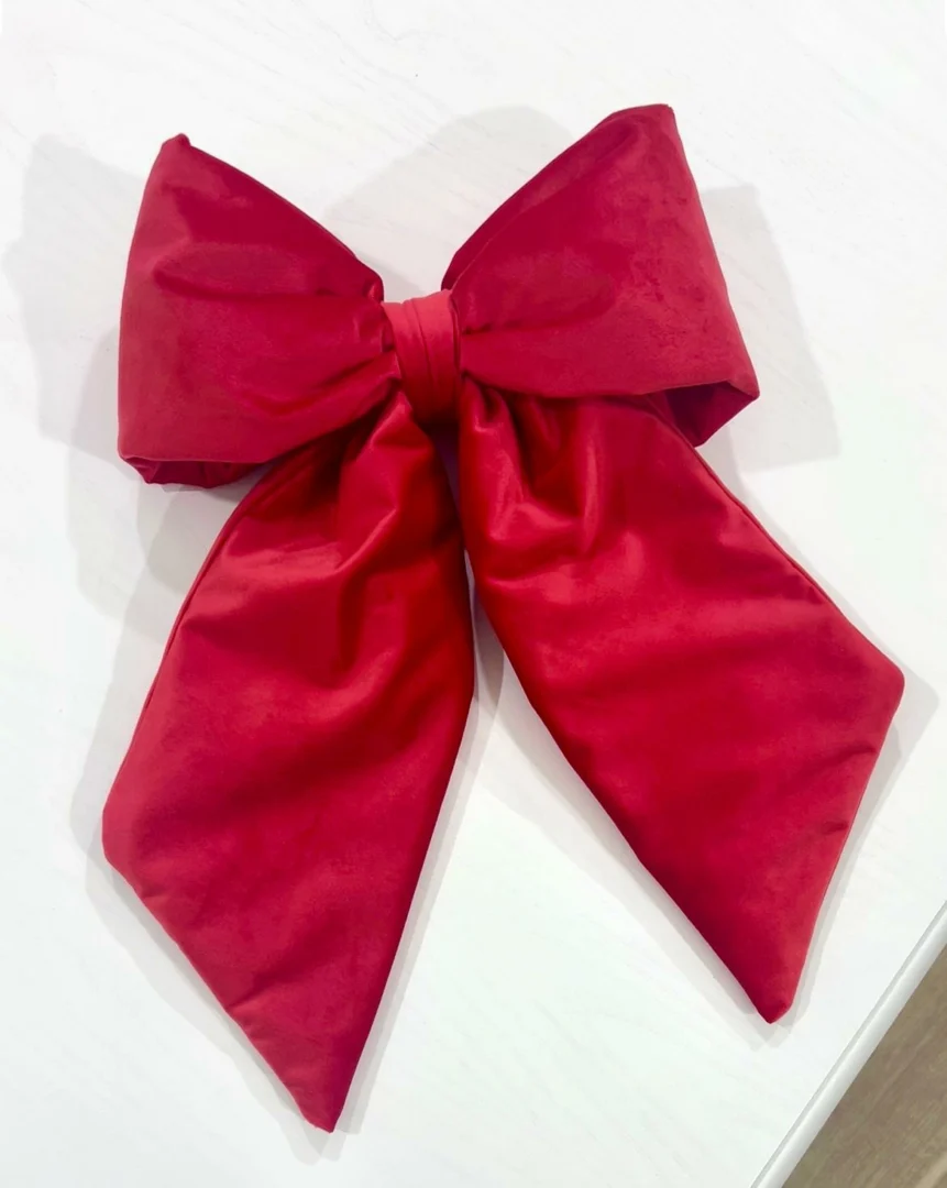 Bellissimo fiocco realizzato interamente a mano in velluto rosso. Il nostro fiocco puรฒ essere usato sia come fuoriporta o come un bellissimo puntale per l’ albero di Natale.