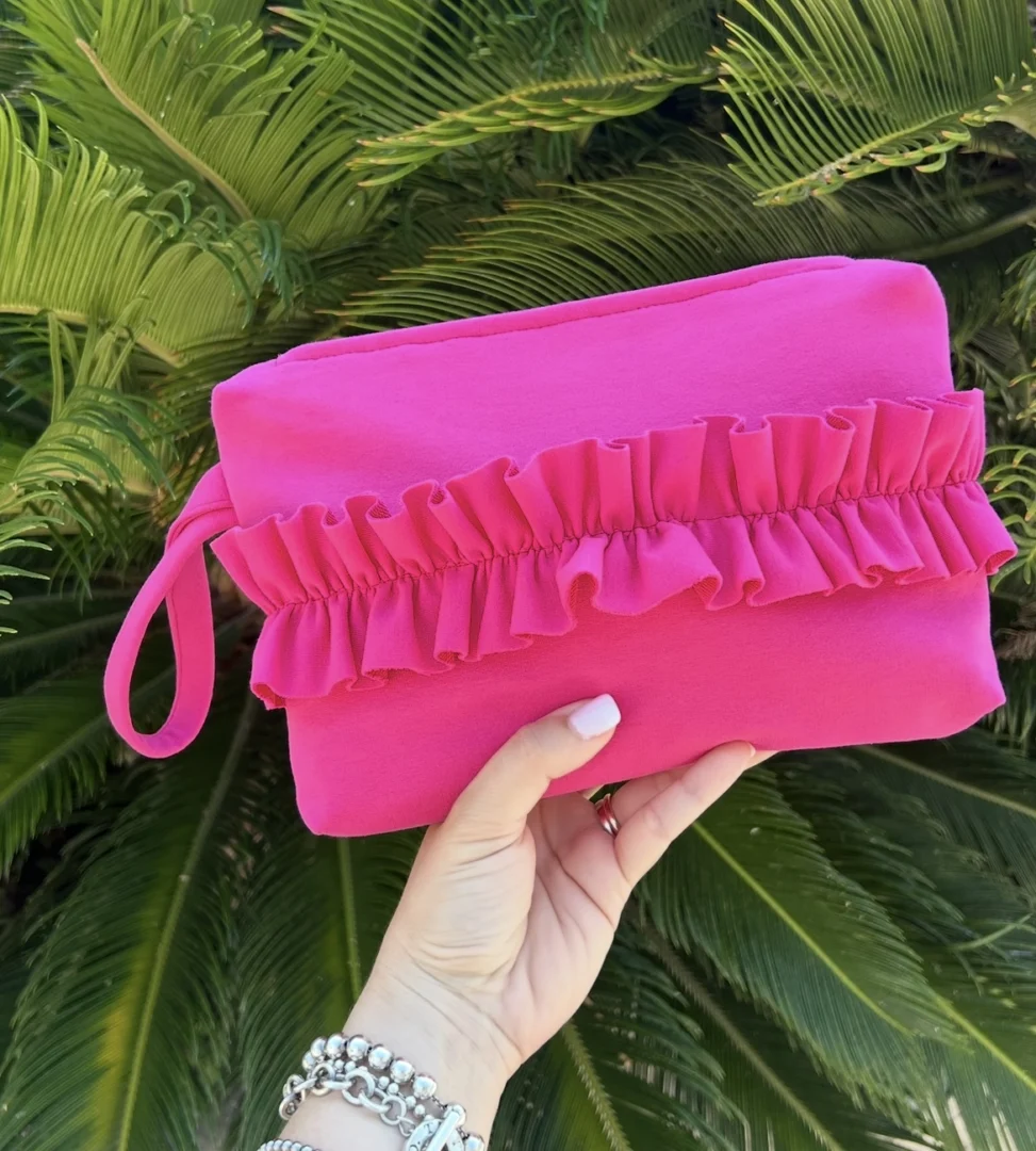 Da portare come borsa per contenere chiavi, portafoglio, fazzoletti, telefono; oppure si puรฒ usare come beauty. Con pratica zip per chiuderla e manico per portare la pochette al polso.
