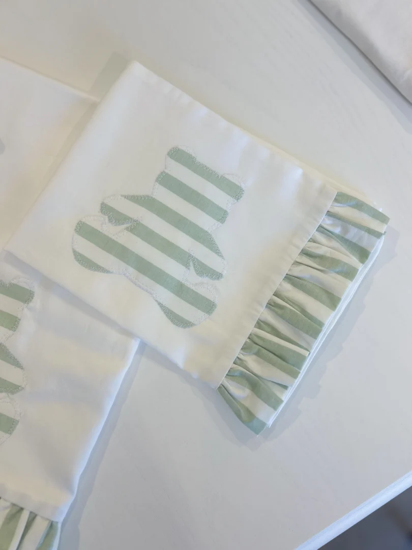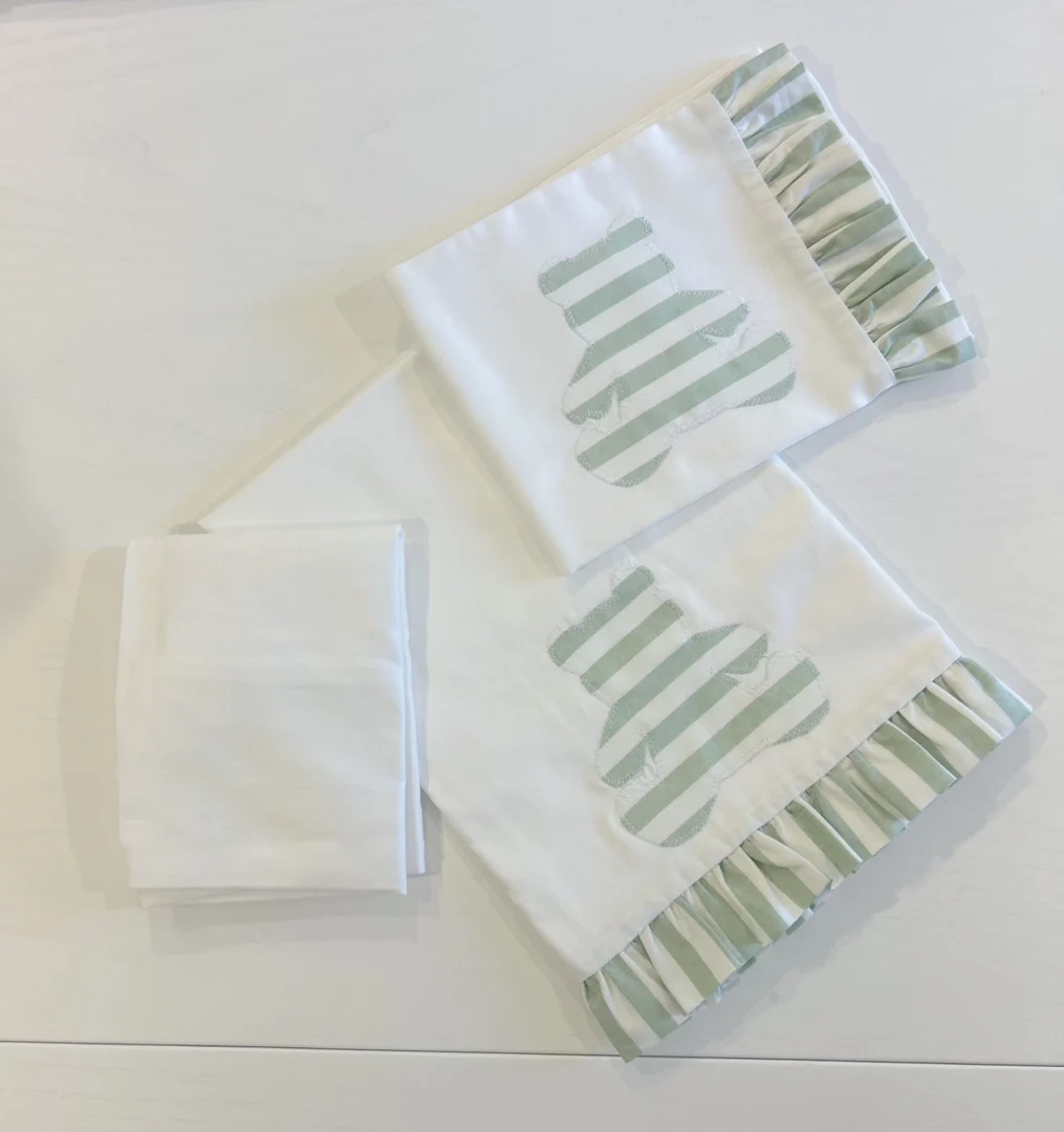 You're viewing: Set lenzuola bimbo/a con orsetto a righe verdi 55,00